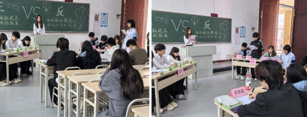反方紧扣“社交媒体疏远人际距离” 展开攻势。一辩直击虚拟社交痛点,指出情感表达因脱离真实语境而流于表面,“点赞之交”“话术式关怀” 正消解关系纯粹性;同时强调线上社交对线下互动的挤压,认为文字与符号无法传递肢体语言和眼神交流的温度。攻辩环节,反方以春节家人各自刷手机的场景引发共鸣;自由辩论中,凭借严密逻辑与敏捷反应,持续巩固论点,尽显辩论锋芒。