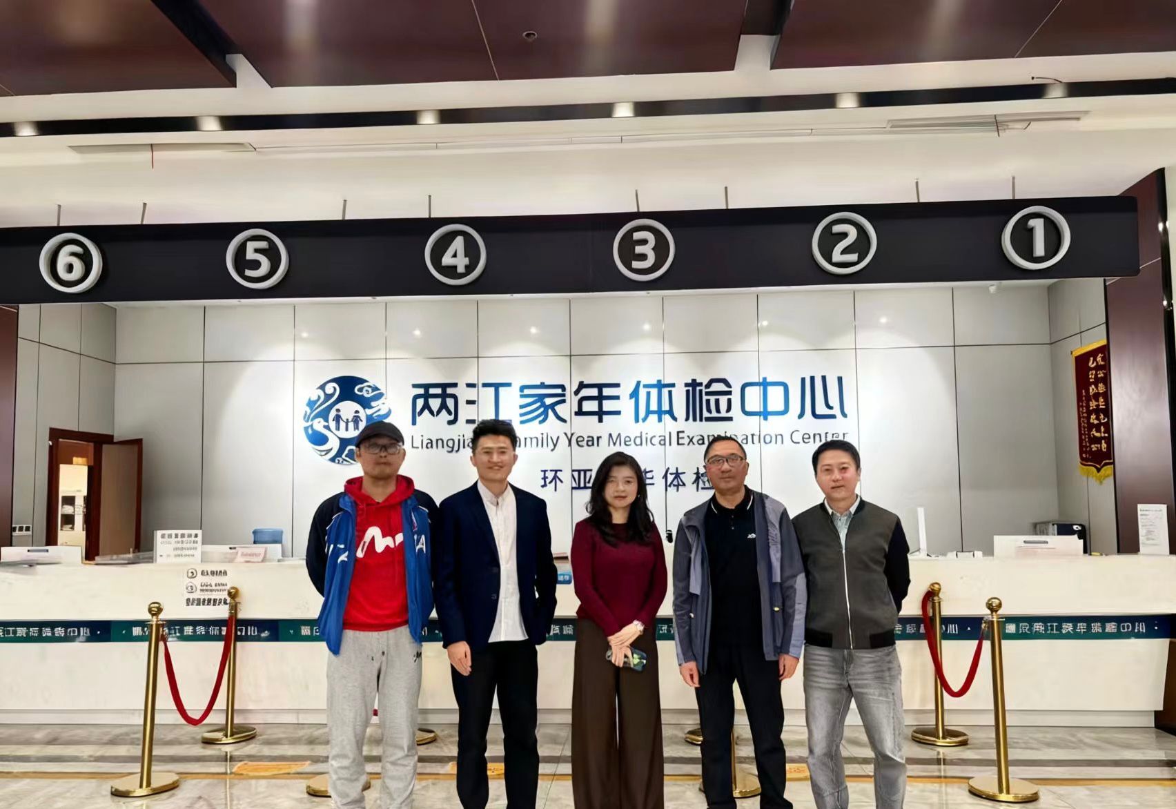 重庆两江家年体检中心董事长郑斌陪同学院一行,实地考察了中心健康管理服务区、功能检查区及报告解读中心,细致讲解健康服务领域的运营模式与创新实践。各功能区流程规范、设备齐全、团队专业,充分展现出中心在提升公共健康服务质量上的扎实探索与担当。
