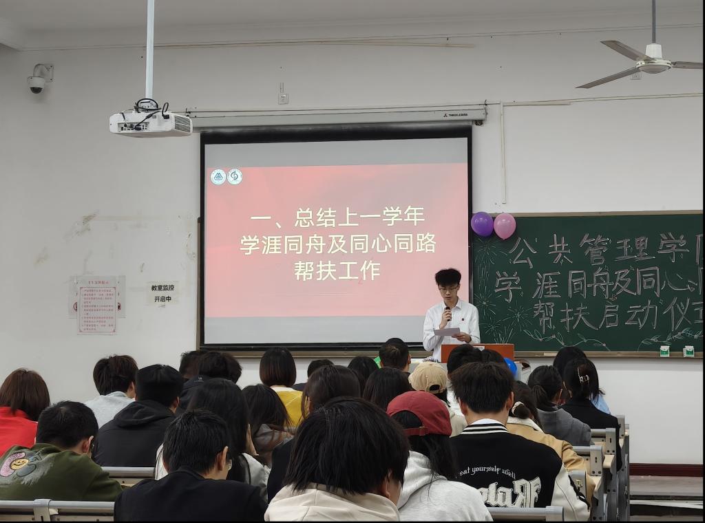 回顾过往,总结经验明方向。启动仪式上,刘佳俊同学全面总结上一学年帮扶工作。学院创新构建“双轨帮扶”机制,公共管理总协会牵头“学涯同舟”学业互助,党员服务站推进“同心同路”朋辈引领。通过定期学习交流、一对一帮扶等举措,积累了宝贵经验,培育出优秀学生榜样,成效显著。不仅助力多名学业困难学生提升成绩,还营造了互帮互助的学习氛围。此次总结为后续工作优化指明方向,如增强帮扶的针对性与个性化。