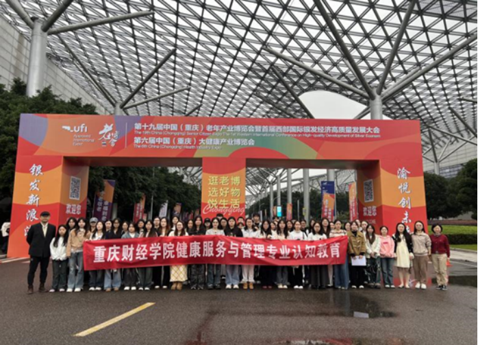 为深化“产教融合、实践育人”理念,精准对接银发经济与大健康产业人才需求,提升不同学段学生专业适配能力,我校公共管理学院于2025年11月8日组织25级本科生20名、23级专升本学生30名,赴重庆国际博览中心参加第十九届中国(重庆)老年产业博览会暨第六届中国(重庆)大健康产业博览会,开展沉浸式专业认知教育活动。
