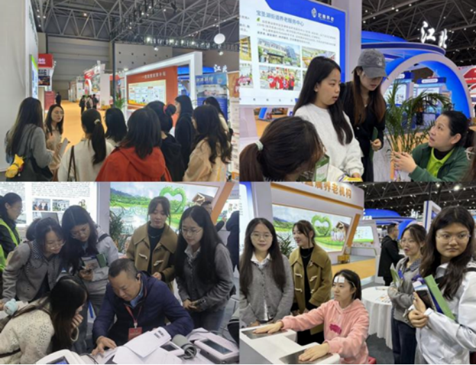 本次活动紧扣专业发展定位,结合“银发新浪潮 渝悦创未来”的主题,带领学生在10余个核心展区里,初步了解了重庆适老化补贴等惠民政策,亲身体验了AI健康监测机器人等数智化产品,旁听了参展企业围绕“医养融合”、老年健康管理流程优化等核心议题的交流,以及首届西部国际银发经济高质量发展大会中行业专家对“AI数智驱动养老产业升级”等热点的解读。
