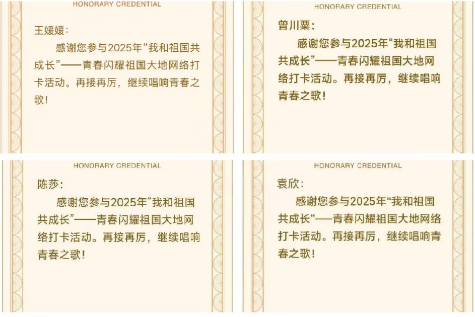 “青年兴则国家兴,青年强则国家强。”习近平总书记曾寄语广大青年,“要坚定不移听党话、跟党走,怀抱梦想又脚踏实地,敢想敢为又善作善成,立志做有理想、敢担当、能吃苦、肯奋斗的新时代好青年。”这场网络打卡,不仅是一次指尖的互动,更是公共管理学子将专业所学转化为报国实践的生动尝试,让“以学促行、以行践学”成为公共管理学院学生的成长底色。未来,公共管理学院也将继续以“打卡”为起点,让青春的光芒在祖国大地上持续闪耀,让网络空间成为传递正能量、涵养家国情怀的“新课堂”,用公管人的责任与担当,为祖国发展写下属于青春的注脚。