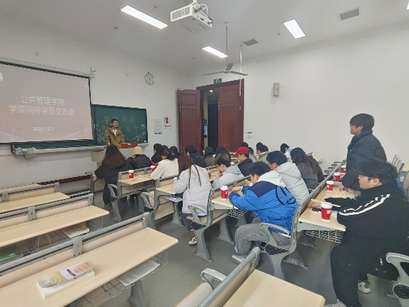 为深化“学涯同舟”学业帮扶活动成效,激发学员学习内生动力,12月5日中午,公共管理总协会于教学楼1305教室成功举办学员交流会。专职辅导员梁艳、李政老师与30余名学员共聚一堂,与学员们共话学习心得,共谋进步良策。