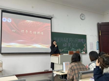 12月10日中午,公共管理学院公共管理总协会在1405教室举行学涯同舟及同心同路帮扶活动总结表彰仪式。学院团总支书记阳圆老师、专职辅导员王春凤、王芹、李政老师出席活动,与讲师学员们共同见证帮扶成果,表彰在帮扶活动中表现突出的先进个人。