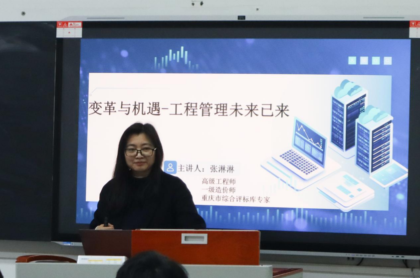 2025年12月11日,为帮助大一新生明晰专业发展路径,树立清晰的职业规划,工程管理专业组织开展了针对2025级学生的行业发展认知专题讲座:工程管理变革与机遇。本次讲座特邀外语外事学院副教授、高级工程师张淋淋老师主讲,围绕工程管理专业未来发展前景展开深入分享,为新生们带来了一场兼具专业性与前瞻性的知识盛宴。