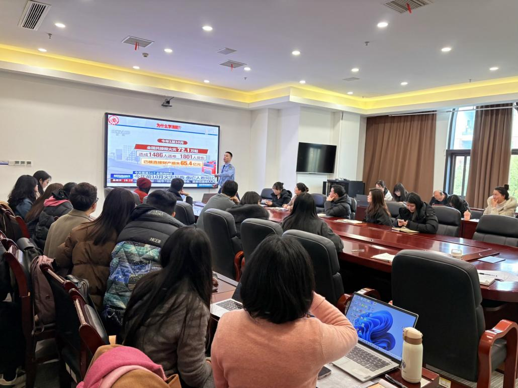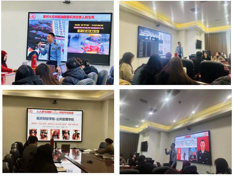 为深入践行“全民消防,生命至上”理念,切实提升教职工消防安全意识与应急处置能力,筑牢校园及家庭双重安全防线,1月23日,公共管理学院于2303会议室组织开展2026年“全民消防 生命至上-安全用火用电”专题培训。本次培训特邀重庆市利民防火中心刘教官授课,学院全体教职工参加学习。