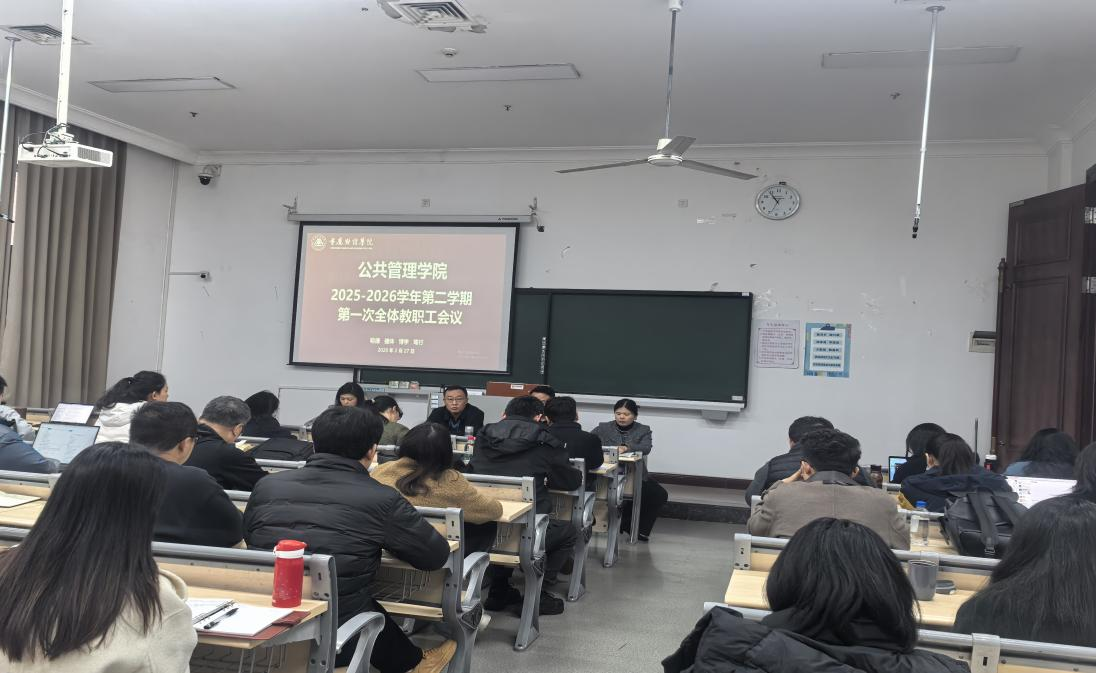 此次会议的召开,进一步统一了学院全体教职工的思想认识,明确了新学期的工作方向和重点任务。大家纷纷表示,将迅速收心归位,以饱满的热情、务实的作风,凝心聚力、笃行实干,全力投身于迎评促建和新学期各项工作中,为学校顺利通过本科教学工作合格评估、建设中国一流新型财经大学,推进学校“十五五”规划良好开局贡献公共管理学院的力量。