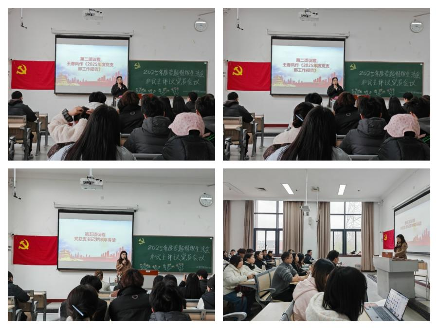 会议伊始,王春凤同志代表学生党支部委员会作对照检查,全面回顾2025年度支部各项工作开展情况,深入查摆支部建设中存在的问题与不足,深刻剖析问题产生的根源,并结合支部工作实际,明确了后续整改方向和具体举措。对照检查结束后,全体党员本着实事求是、客观公正的原则开展党支部民主评议,紧扣支部政治建设、组织建设、履职尽责、作用发挥等方面,结合支部对照检查情况进行全面评议,认真填写支部评议表,为支部建设建言献策。