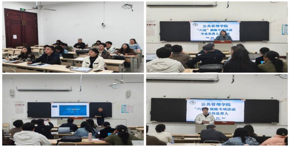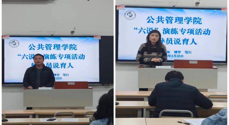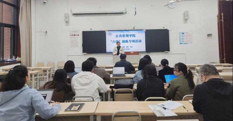为扎实助力学校教育教学建设事业,进一步明晰学院各专业建设、课程改革与育人实践工作思路。3月23日,公共管理学院组织开展 “六说” 专项演练活动。本次演练聚焦 “专业负责人说专业、教师说课程、辅导员说育人” 三大核心环节,围绕专业建设、课程改革、育人实践开展集中研讨,以练促改、以练促建,为学校教育教学高质量发展夯实学院层面工作基础。学院李辉院长、罗婷婷书记、余天霞副院长,各系主任及参演教职工共同参与活动,演练由余天霞副院长主持。