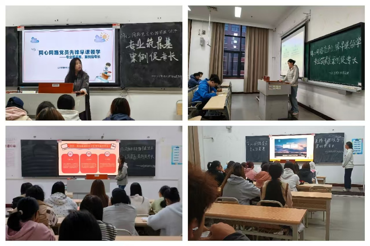“以新生成长需求为导向,让每堂早课都成为精准破解困惑的有效途径。”学院党总支书记罗婷婷表示。本次活动在 “2+3+5”育人体系框架下,将“校园生活适应”与“未来发展规划”作为两大核心支撑,既解决新生当下困惑,也为其长远发展铺路。针对大一新生普遍存在的自律不足、规划缺失等问题,校园生活维度聚焦寝室学风营造、专业学习方法、社团与学业平衡等实用内容,由党员先锋结合亲身经历分享经验;未来发展维度则紧扣学校“一生一规划一方案”要求,围绕考研、考公、就业三大核心赛道开展早期引导,通过“一人一策”式指导帮助新生建立成长认知,与学校“入学即入行”的人才培养思路紧密衔接。