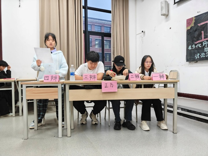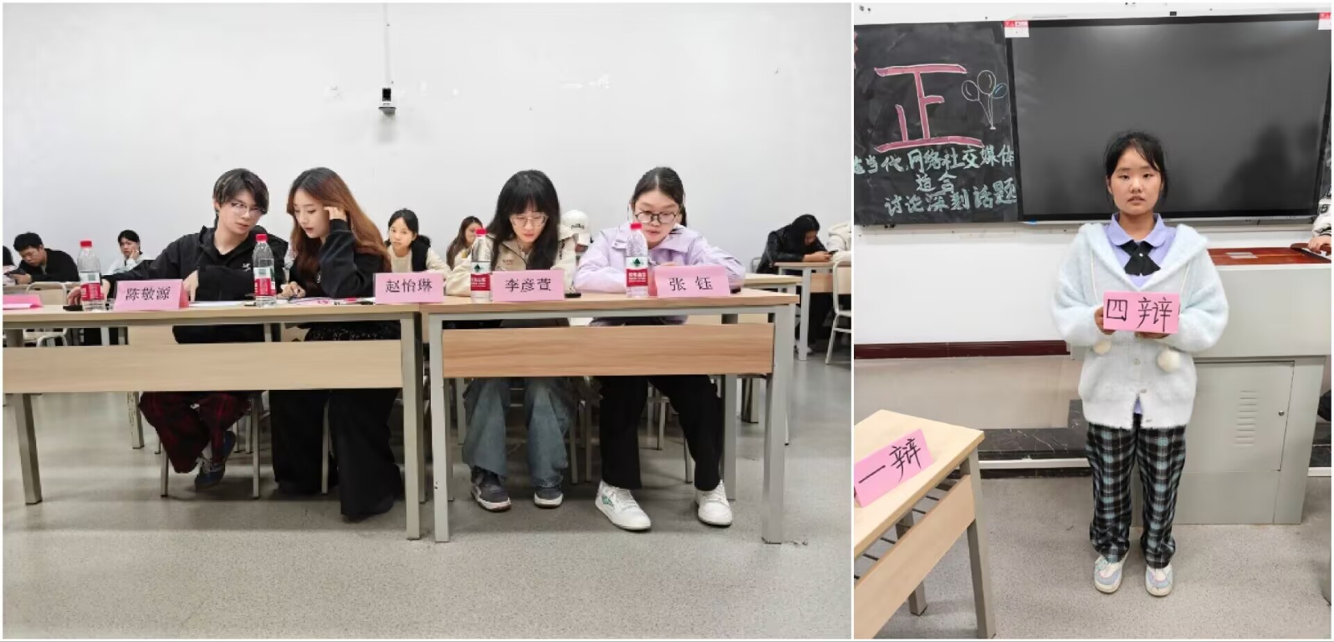 11月10日下午5:30 至 7:10,教学楼 1302 教室气氛热烈,“思在杯” 辩论赛半决赛在此如期举行。本场比赛围绕 “在当代,网络社交媒体适合 / 不适合讨论深刻话题” 这一极具时代性的辩题,由正方 “人民当家作主队” 与反方 “对对队” 展开激烈角逐,双方辩手以精湛的辩论技巧、深刻的思想洞察,为现场观众带来了一场高质量的思想交锋。