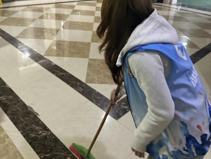 志愿者们分工明确,动作利落。清扫地面的同学弯腰俯身,将桌椅下的纸屑、粉尘逐一扫净,连讲台角落的粉笔头也被清理得一干二净;另一部分同学主动调整歪斜的课桌,用目光测量间距,确保每排桌椅对齐过程中。