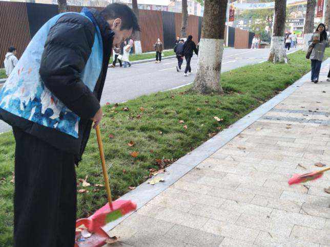 在校园的时光里,扫帚不再仅仅是一件冰冷的清洁工具,它已幻化为一把精准丈量青年社会责任的标尺。青小志团队的清扫带来的不仅是校道的整洁,更是传递了温暖与关爱。