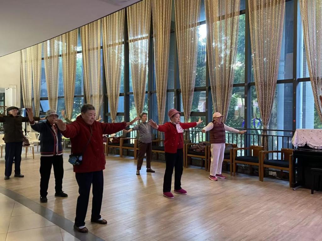 (图3 志愿者陪伴老人们练习八段锦)