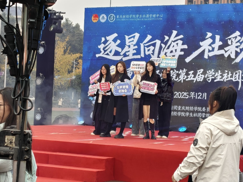 12月4日,重庆财经学院第五届社团文化节以“逐星向海 社彩飞扬”为主题盛大启幕。本次文化节设置“文化星球”“趣味星球”“快乐星球”三站特色活动,42个社团化身“宇航员”共赴盛会,公共管理总协会亦参与其中,在多彩活动中展现协会专业风采。