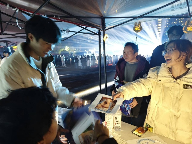 告别“文化星球”,“快乐宇航员号”对接“趣味星球”空间站,闯关赢取“星际能量章”的环节吸引了众多学生参与。公共管理总协会也精心筹备了表情包接力、社团徽章符号拼图、猜灯谜三个互动游戏。表情包接力现场笑声不断,参与者在肢体互动中加深了对社团的认知;徽章拼图与猜灯谜活动则兼顾趣味与知识性,成为不少同学的打卡选择。现场参与氛围热烈,各游戏点位前都排起了长队,公共管理总协会的活动也在这一过程中获得了不少同学的认可,在“最具人气社团”投票中收获了支持。