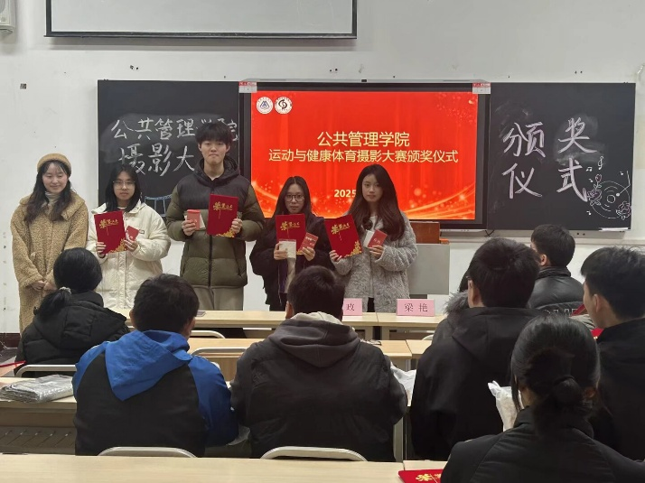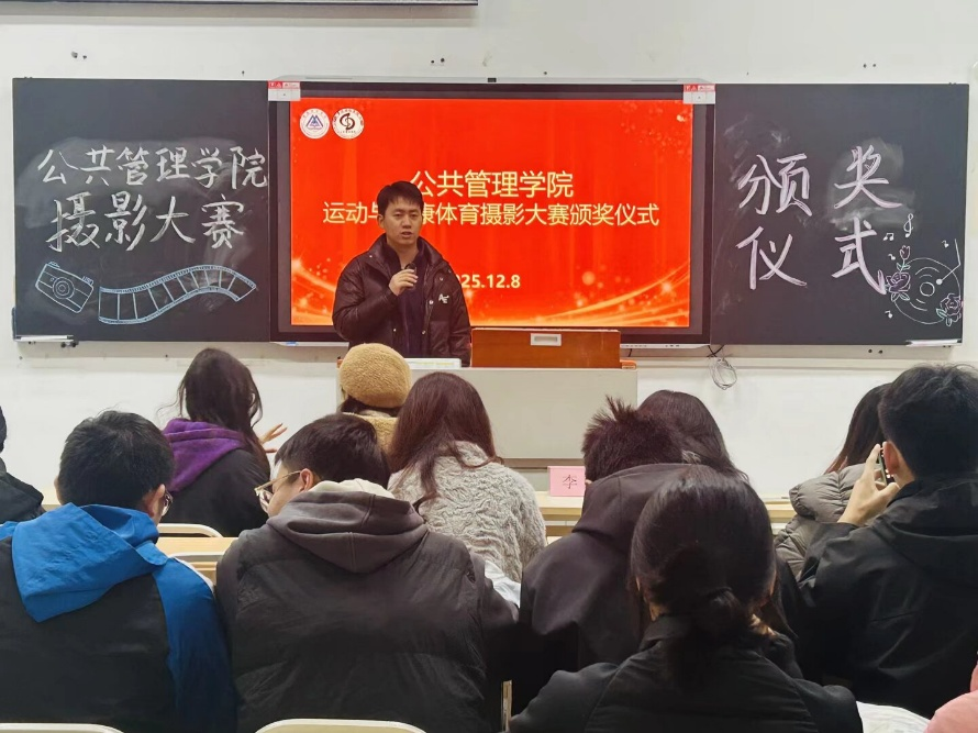 2025年12月8日中午,公共管理学院“健康律动·运动之美”摄影比赛颁奖仪式于教学楼圆满举行。本次比赛旨在传递“主动运动、终身健康”的理念,鼓励同学们用镜头定格校园中运动与健康的精彩瞬间。学院专职辅导员李政老师、梁艳老师与全体获奖同学齐聚一堂,共同见证这场以光影诠释运动风采与青春活力的盛会。
