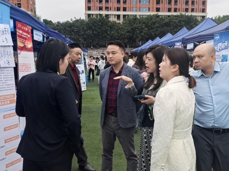 访企拓岗筑平台,23家企业赋能专业对接。为拓宽毕业生就业渠道,学院前期通过"访企拓岗"专项行动,联动全院教师资源深度挖掘行业需求,成功拓展优质合作企业,覆盖物业管理、健康服务与管理、工程管理、土地资源管理等多个专业领域。其中,荣万家生活服务股份有限公司、四川翌佰年健康管理有限公司、淇澳同辉工程咨询集团有限公司等23企业现场设摊,提供百余个匹配度高的岗位,实现专业与产业的精准对接。